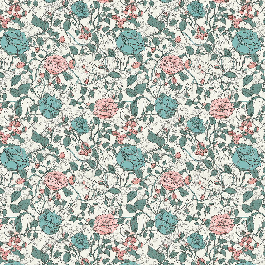 This beautiful seamless pattern features delicate hand-drawn roses, leaves, and vines in soft pastel colors. The botanical and floral elements are arranged in a visually pleasing pattern. The soft pastel colors give it a delicate and feminine look, making it perfect for a variety of digital products. This pattern is high-quality and can be used for a range of projects, such as stationery, packaging, textiles, and more.